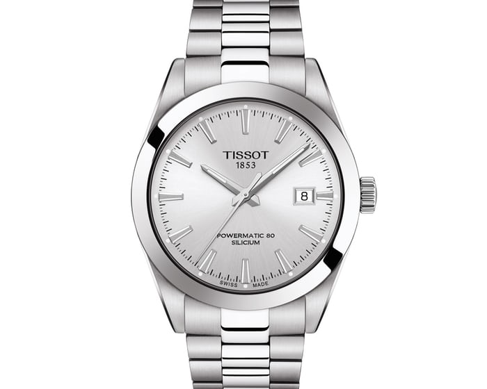 The Gentleman - это 40-мм часы, которые выпускаются в нескольких версиях; будут черные, синие и белые модели циферблата, и часы будут предлагаться как на стальном браслете с полированными центральными звеньями, так и на ремешке. Этот механизм представляет собой 80-часовой механизм Powermatic с кремниевой волосяной пружиной, который должен обеспечивать лучшую устойчивость к помехам от магнитных полей, чем обычный сплав типа Nivarox. Тиссо активно использует движение Powermatic; а расширенный запас хода и немагнитная пружина баланса представляют собой набор технических характеристик, обычно связанных с гораздо более дорогими часами. Оригинальная версия Gentleman, выпущенная в феврале прошлого года, имела немного другой циферблат.